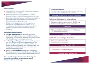 - Sie knüpfen Kontakte zu Führungskräften aus anderen Bereichen (Schule, Wirtschaft, Verwaltung) und vernetzen sich.